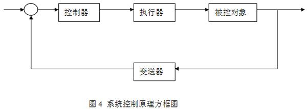根據(jù)工藝流程,在本系統(tǒng)中,被控對象是核心,被測信號(hào)經(jīng)變送器轉(zhuǎn)換成標(biāo)準(zhǔn)信號(hào)(4-20mA或0-5V),與給定值進(jìn)行比較,并對結(jié)果進(jìn)行調(diào)節(jié)運(yùn)算,以輸出作為控制信號(hào),經(jīng)執(zhí)行器實(shí)現(xiàn)對被控對象的調(diào)節(jié)。控制系統(tǒng)方框圖如圖4所示: