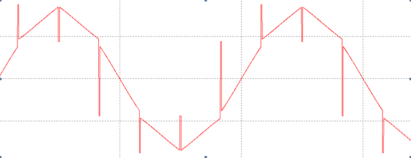 在模擬電路產(chǎn)生信號(hào)中,主要還是對(duì)線電壓或者相電壓過零點(diǎn)的獲取,在過零點(diǎn)的獲取中常用的是用運(yùn)放進(jìn)行過零比較。在反向整流工作中,由于電源的內(nèi)阻存在,在輸入電源上就存在IGBT開通或關(guān)斷時(shí)產(chǎn)生的缺口,如圖1所示: